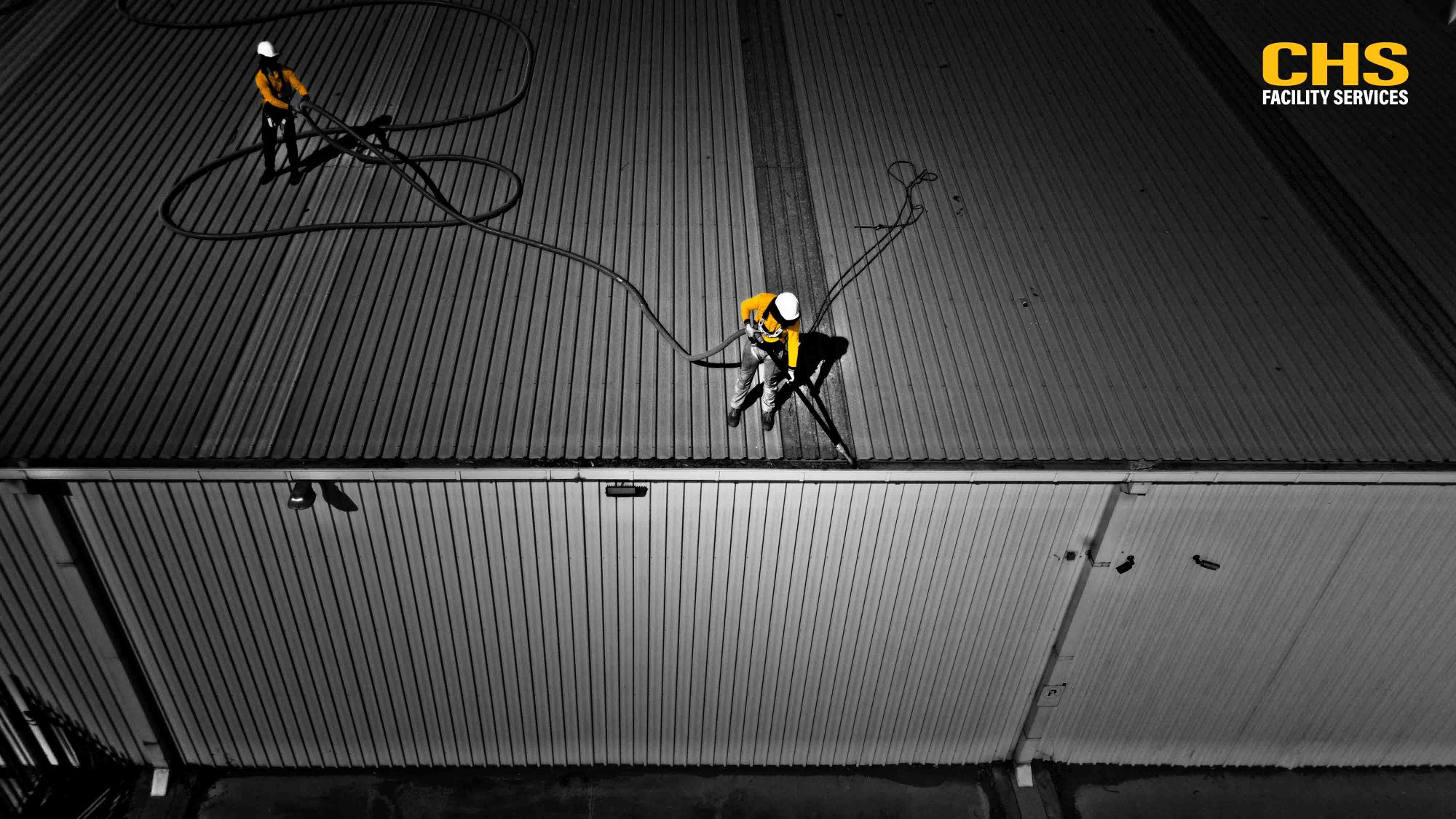 CHS technician pressure washing industrial building Adelaide